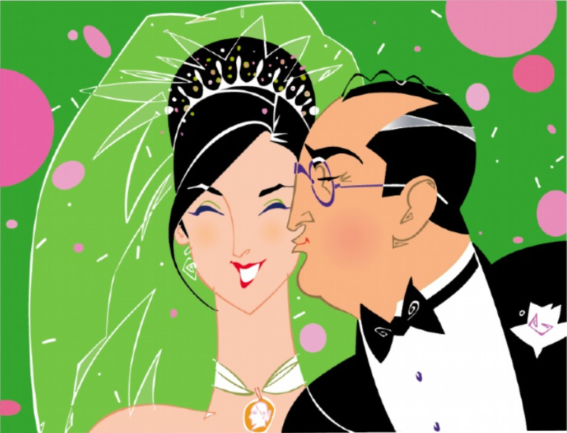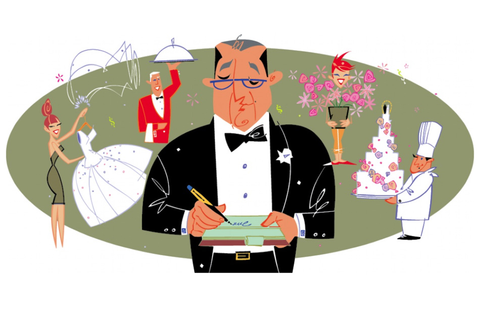 PAYING FOR THE WEDDING 12"x9" . pen and ink, Adobe illustrator