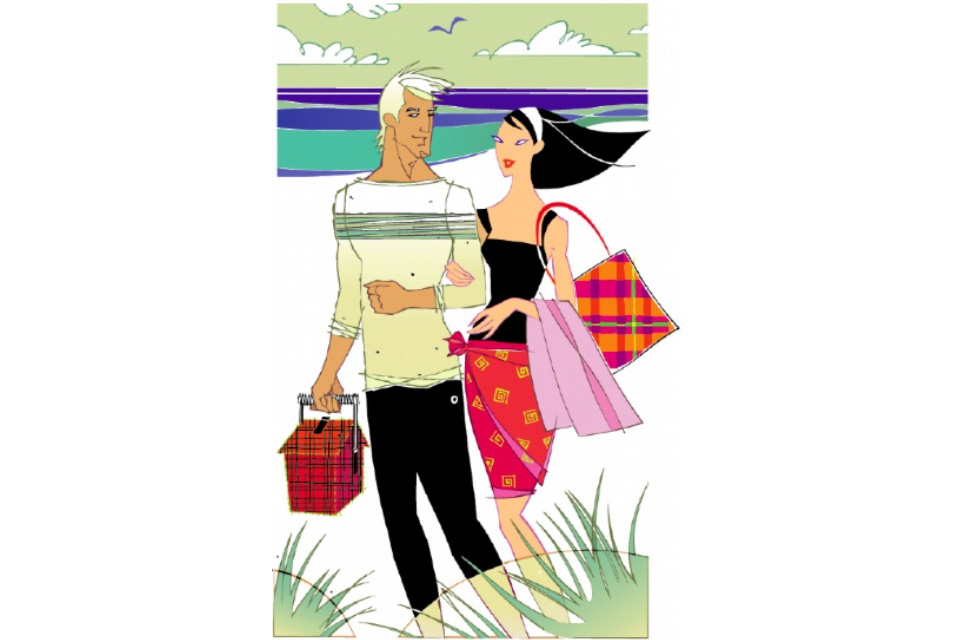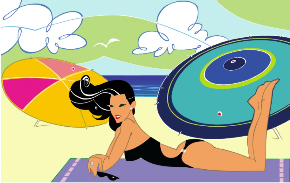 AT THE BEACH 9"x12" . pen and ink, Adobe illustrator