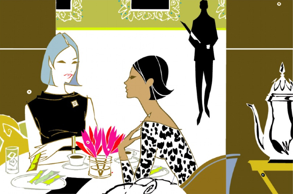 LADIES WHO LUNCH 12"x9" . pen and ink, Adobe illustrator
