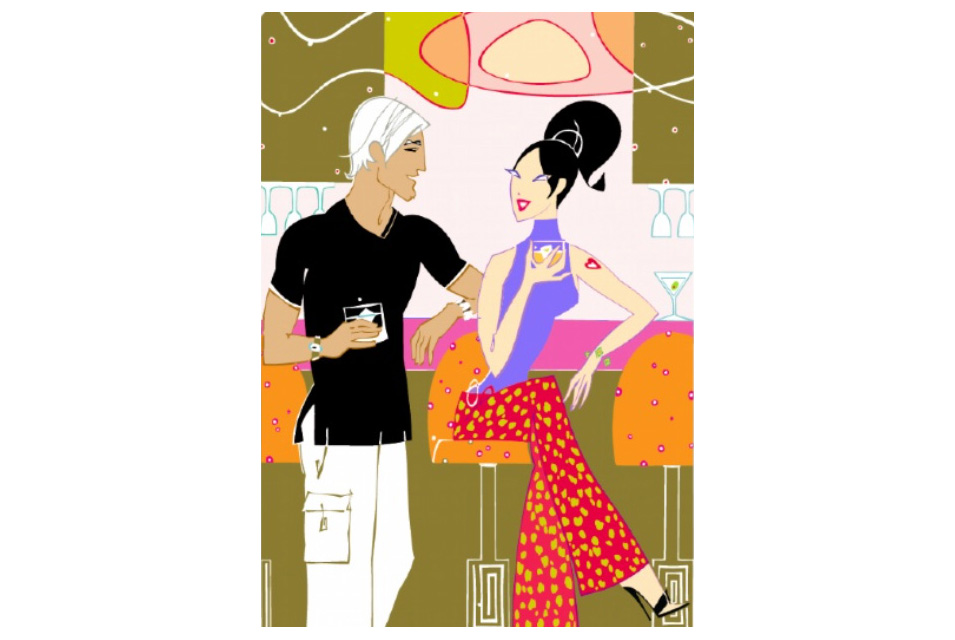 OUT ON THE TOWN 9"x12" . pen and ink, Adobe illustrator