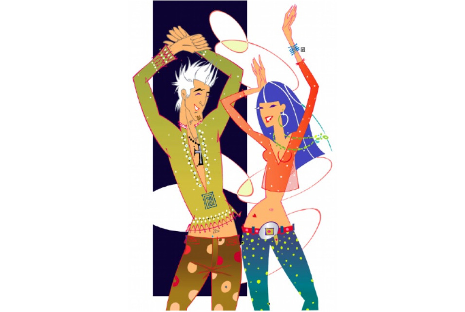 DANCE CLUB 9"x12" . pen and ink, Adobe illustrator