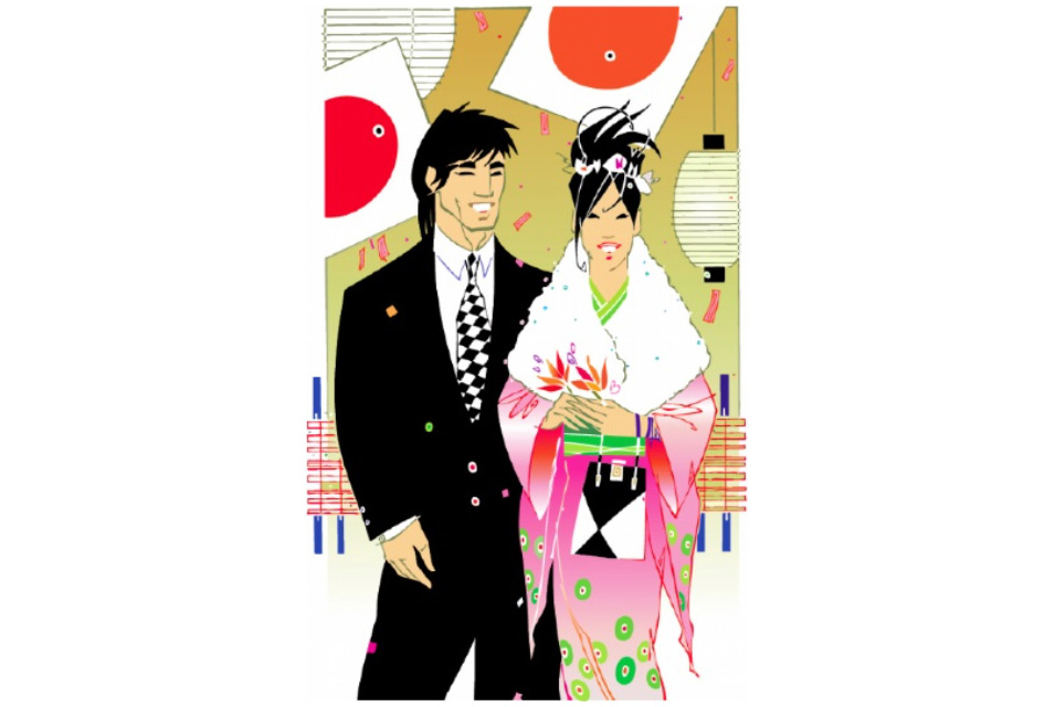 PAYING FOR THE WEDDING 12"x9" . pen and ink, Adobe illustrator
