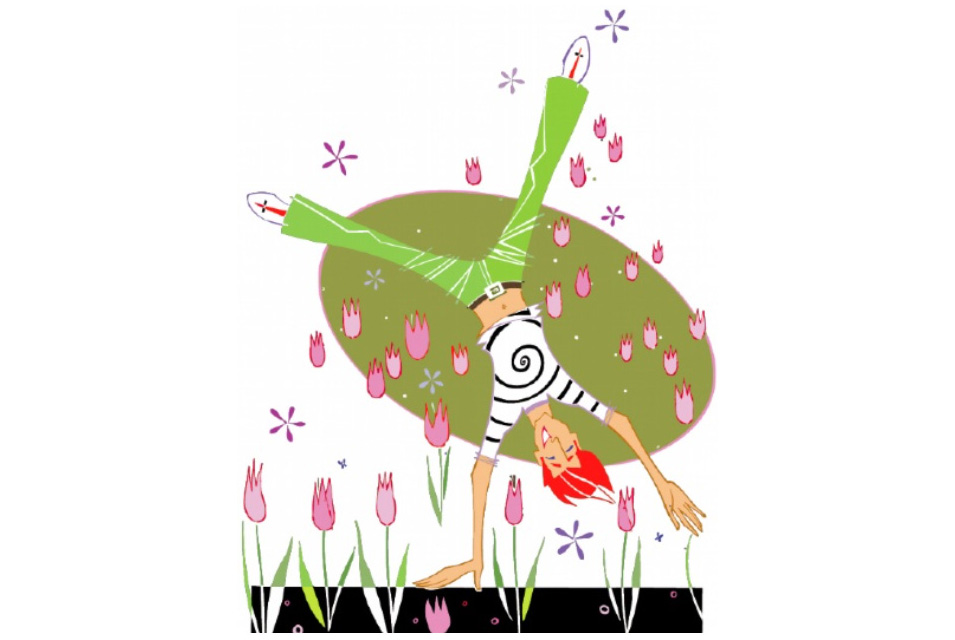 SPRING CARTWHEEL 12"x9" . pen and ink, Adobe illustrator