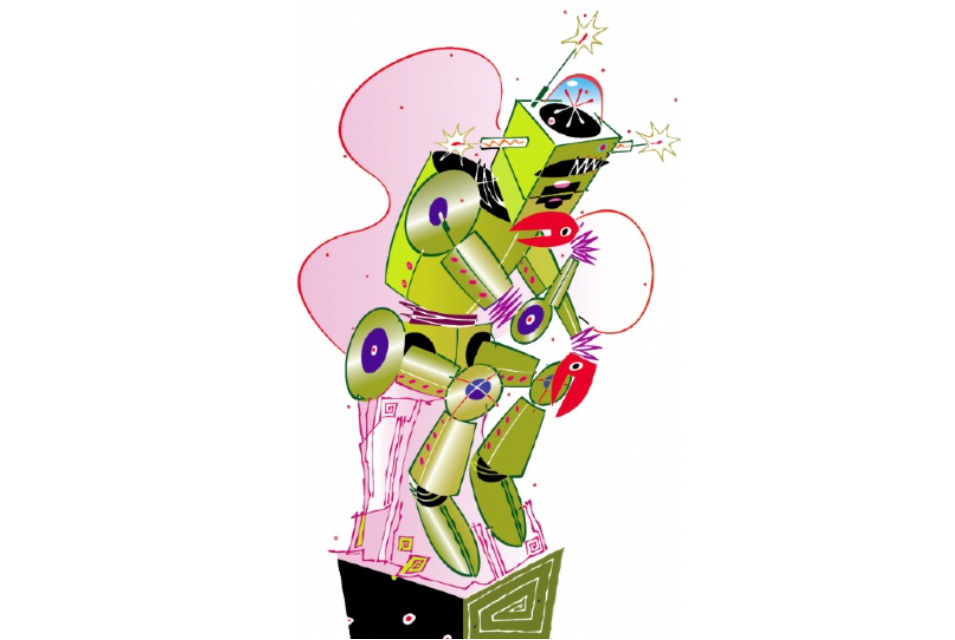 ROBOT THINKER 9"x12" . pen and ink, Adobe illustrator