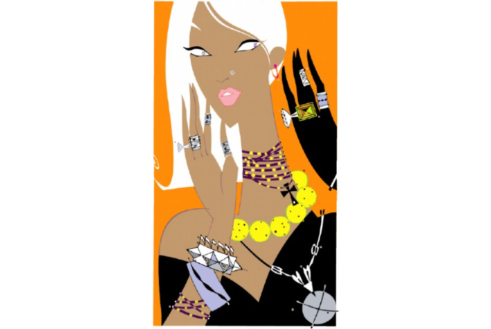 LADY JEWELRY 9"x12" . pen and ink, Adobe illustrator